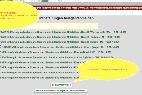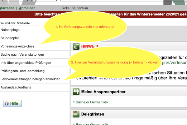 Belegen: Wie man sich zu Lehrveranstaltungen anmeldet