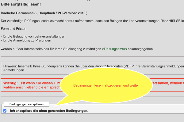 Für Sie ist LSF nicht nur wichtig, um sich jedes Semester über die neu angebotenen Lehrveranstaltungen zu informieren, sondern mit LSF erstellen Sie auch Ihren Stundenplan, "belegen" die Lehrveranstaltungen und nehmen die "Prüfungsanmeldungen" vor.