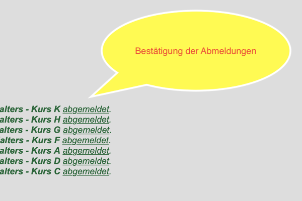 Die Abmeldung können Sie innerhalb der Belegfrist selbst über LSF vornehmen (über „belegen/abmelden″). Nach dem Ablauf der Belegfrist (also auch im laufenden Vorlesungsbetrieb) melden Sie sich bitte per E-Mail bei der/dem jeweiligen Lehrenden der Lehrveranstaltung ab.